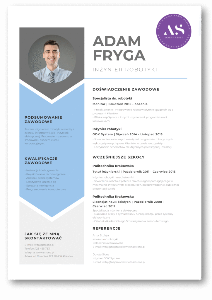 przekazuje pracodawcy, że AS jest świadomy swoich mocnych stron i gotowy do odpowiedniej rozmowy